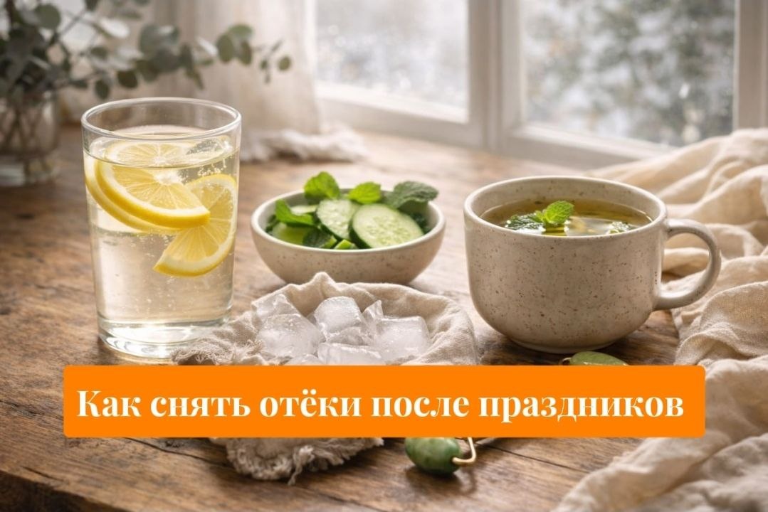 Утро после праздников. Всё было вкусно, весело и по‑домашнему тепло. Но вот зеркало уже не радует — лицо кажется одутловатым, пальцы слегка припухли, а любимые кольца сидят плотнее обычного. Знакомо? Это классические постпраздничные отёки — и они не говорят о вашей «неидеальности». Это всего лишь сигнал организма, что он устал и нуждается в перезагрузке. В этой статье расскажу, почему так происходит и как мягко, но эффективно вернуть себе свежесть, лёгкость и нормальное самочувствие — без крайностей, голодовок и резких ограничений. Отёки — это задержка жидкости в тканях. Возникает она, когда нарушается водно-солевой баланс. Причины могут быть разные, но в новогодние каникулы они почти всегда сочетаются: 1. Избыточное потребление соли. Солёности, копчёности, маринады и соусы буквально притягивают воду. Один грамм соли способен удержать до 100 мл жидкости. За пару вечеров — считайте сами. 2. Сладости и выпечка. Переизбыток сахара повышает уровень инсулина, что также мешает организму выво