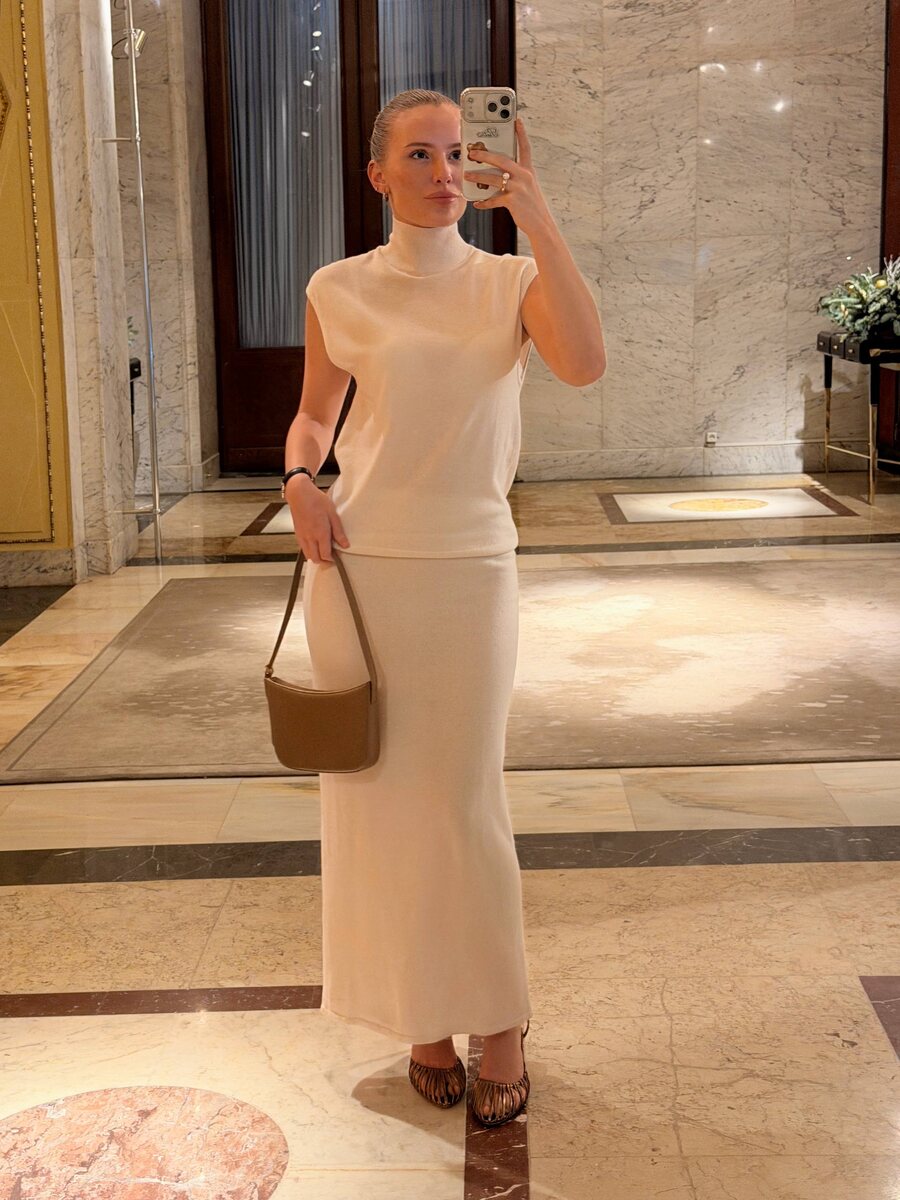 Главным цветом 2026 года Pantone выбрал нейтральный оттенок белого. Такой же светлый и мягкий, как облако, комплект из шерсти и кашемира есть в нашей коллекции: уютный кардиган, топ с высоким горлом и длинная юбка макси. Стилизуйте его с босоножками Cher и сумкой Bar из шелка — чтобы добавить ярких акцентов. Больше изделий из раздела «SALE» ждут вас на сайте и в приложении 12 STOREEZ 🤍12 STOREEZ
