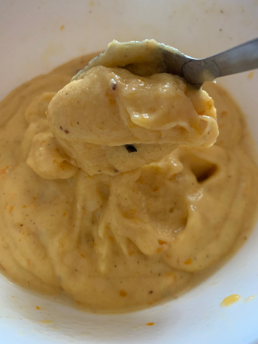 Ребяяяята я не предполагала, что это так вкусно! Купила 2 хурмы бычье сердце, порезала на четвертинки, положила на ночь в морозилку. Утром просто положила хурму в чашу блендера и добавила чуть молока (у меня овсяное, но можно любое). Можно даже добавить воды для более диетического варианта, получится сорбет. Можно не добавлять ничего, если у вас очень мощный блендер. Взбить до гладкости, подавать в пиале.