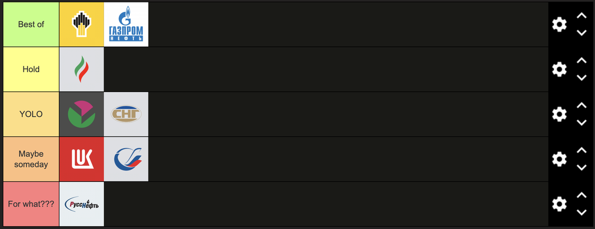 На фоне последних событий хотелось приступить к глобальному сравнению российских нефтяников, но в ходе поиска информации вышел на статью на Дзене, которая полностью сочетается с моими мыслями. Для желающих ознакомиться оставляю ссылку. Тут же тезисно пробежимся по компаниям . Роснефть. Главная российская нефтяная компания под руководством серьёзнейшего политика и бизнесмена Игоря Ивановича Сечина. Единственная российская компания, ради спасения которой Центральный банк включал печатный станок. Компания планирует начать разработку одного из крупнейших в мире месторождений "Восток Ойл" + на фоне маячат перспективы совместных проектов с ExxonMobile после завершения СВО. Как и со Сбером, вероятнее, наступит ядерная зима, чем Роснефть перестанет зарабатывать. Лукойл. Вторая по размерам российская нефтяная компания. У неё нет ни таких месторождений, как "Восток Ойл", ни своего собственного Игоря Ивановича. Но у компании была другая особенность: она работала по бизнес-модели мировых лидеров н
