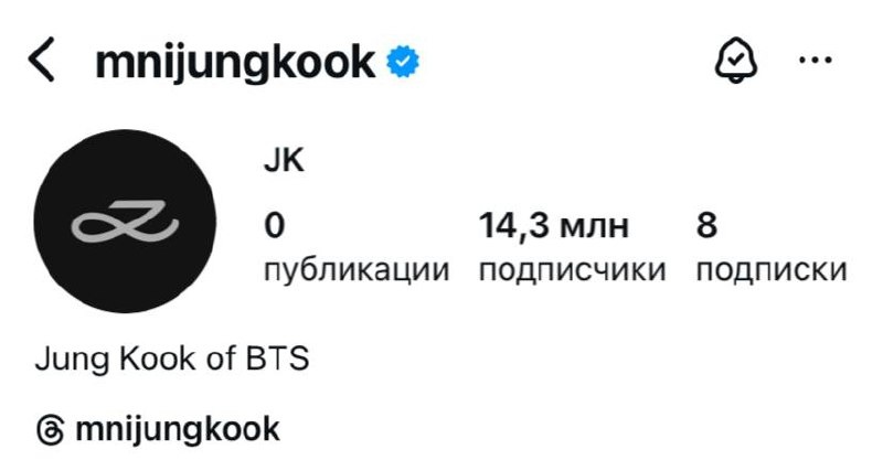 🔮 Чонгук добавил ссылку на Threads в описании своего профиля в Instagram