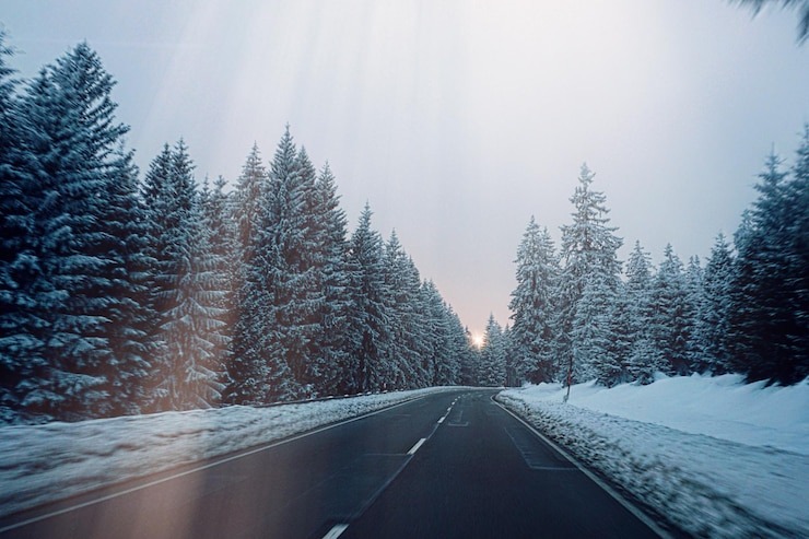 На выходном поехали мы в гости. Снега навалило... Мы ехали по трассе и я поняла, что вокруг пусто, ни одной проезжающей машины. И вот тут я попросила мужа остановиться и сделала фото.