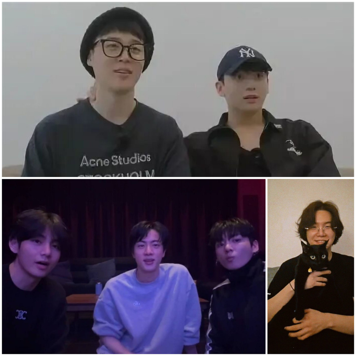 Трансляция Юнги была мною ожидаемой и, в тоже время , неожиданной. Он изменился, выражение глаз стало другим, изменилась улыбка. У Юнги интересная конфигурация губ, правый уголок длиннее левого, и от этого он сначала улыбается в одну сторону, а потом другой стороной, а сейчас улыбка становится более равномерной, правильной не похожей на ухмылку. Да и фирменной ухмылки уже нет. Немного зацепило то, что он несколько раз отворачивался от камеры и не чувствовалось желание общаться. Но это нормально, после такого молчания. А вот если бы рядом не было кота, о чём бы он тогда разговаривал с нами? Нет я не возмущаюсь и не ворчу, просто понимаю , что до полноценного общения ещё очень и очень далеко. А может и совсем никогда. Ну и ладно, я и на кота согласна. В принципе, мне вполне достаточно и появления его на групповых трансляций, ему там легче, спокойнее и увереннее, главное видеть, что он здоров душой и телом.