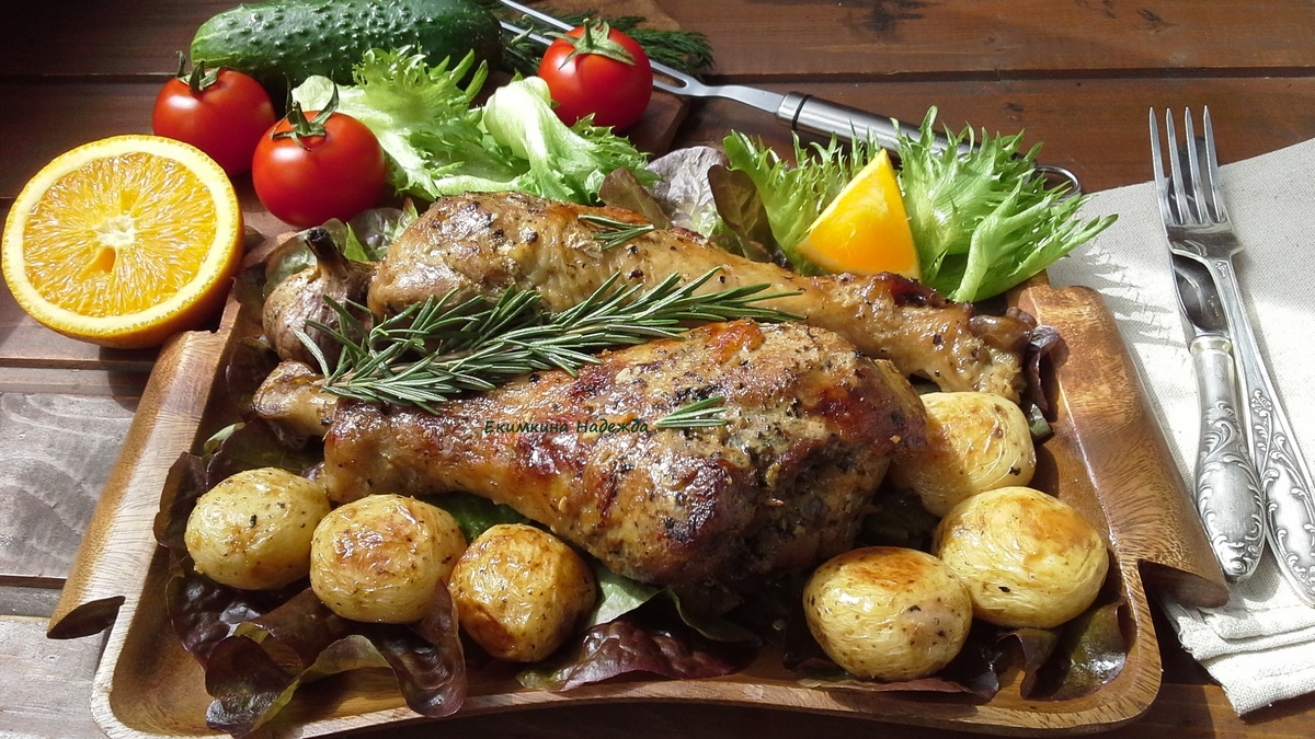 Друзья, сегодня Старый Новый год. Тоже будем отмечать! Предлагаю вашему новогоднему меню очень вкусное блюдо — голени индейки, запеченные в соусе с горчицей, апельсиновым соком, сметаной… Это очень вкусно и празднично! Время приготовления — маринование 2 часа, запекание 1 час 40 минут. Для маринада: Сок апельсина отжала при помощи призовой соковыжималки для цитрусовых от 7Дач (Получила приз «Соковыжималка для цитрусовых»).