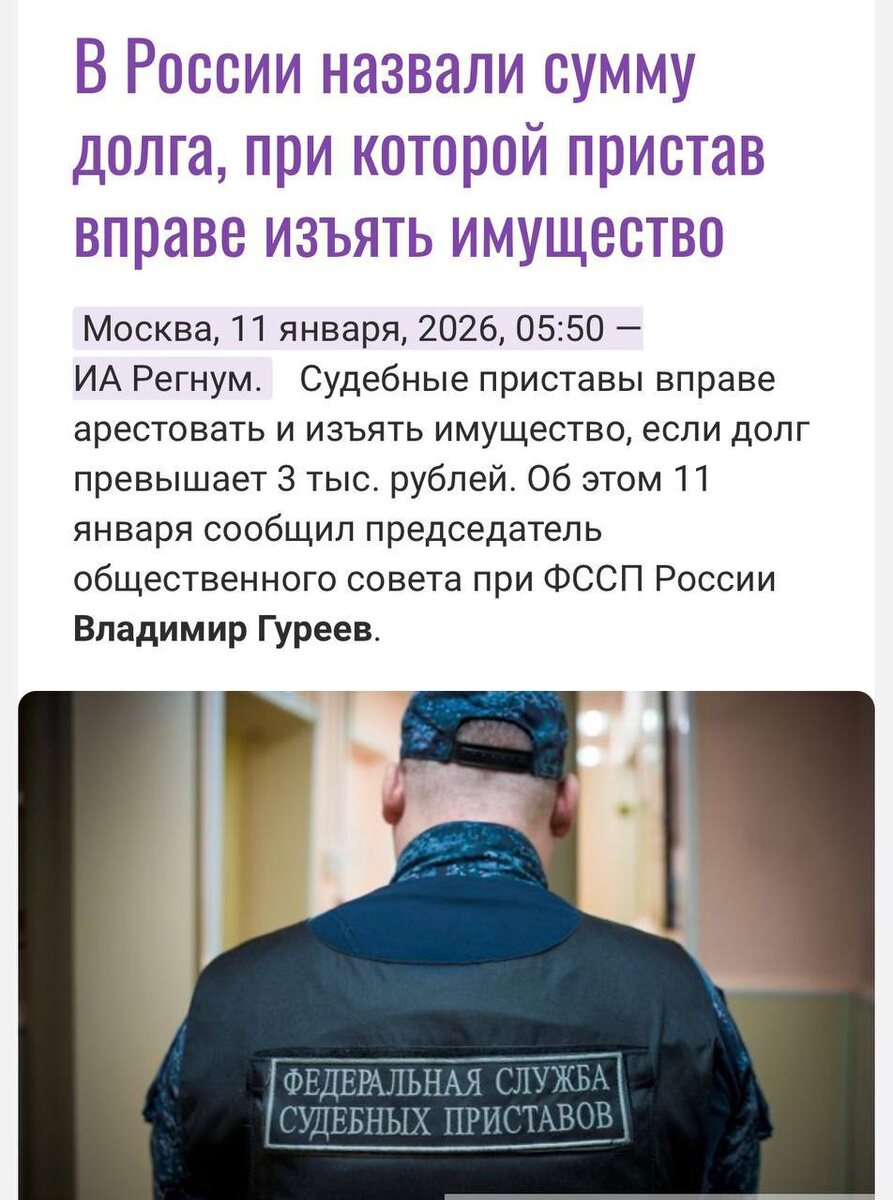 При задолженности свыше трёх тысяч рублей судебные приставы могут наложить арест на имущество должника. Об этом сообщил председатель общественного совета при ФССП России Владимир Гуреев. Законодательство допускает такие меры взыскания даже при относительно небольших суммах долга. Кроме того, денежные средства на счетах граждан могут быть заблокированы независимо от размера задолженности. Эта мера применяется для обеспечения исполнения судебных решений.