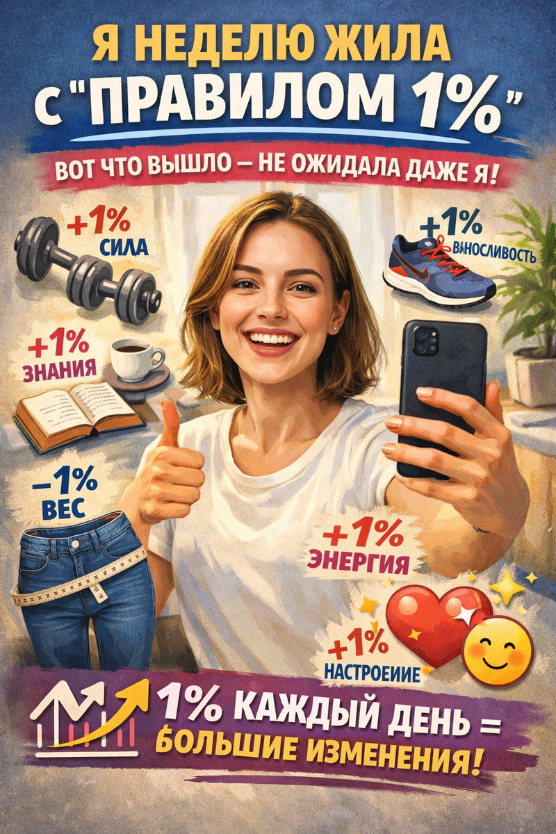 Я тоже там была. Пока не наткнулась на «правило 1%». Его суть в одной фразе: «становиться лучше не на 100% за день, а на 1% за день.» Звучит смешно? Я тоже скептически отнеслась. Но решила провести эксперимент: 7 дней, 7 микро-привычек. Без героизма. Результаты меня ошеломили.