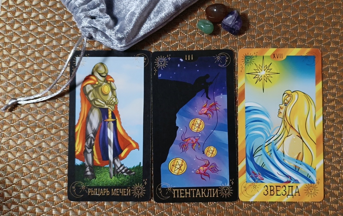 А Десятка Пентаклей добавляет красок. Смотри, эта карта про стабильность, семью, благополучие. И тут два варианта: либо он сейчас фокусируется на своей жизни — работа, быт, может, семейные дела (привет маме, которая всегда знала, что ты «не та девушка»). Либо — и это больнее — он строит эту самую стабильность с кем-то другим. Помнишь Тройку Пентаклей из первого вопроса? Ну вот. Он не просто уплыл — он плывёт к чему-то конкретному. К своему «счастью», своему «дому». И там, похоже, уже кто-то ждёт с горячим ужином. А ты осталась на том берегу.