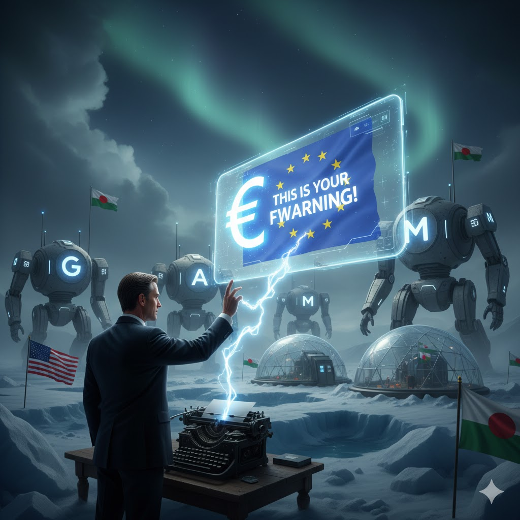 Друзья, забудьте всё, что вы знали о геополитике. Самый главный передел мира в 2026 году начался не в Украине и не у берегов Тайваня. Он начался на гигантском ледяном острове с населением 56 тысяч человек и несметными запасами редкоземельных металлов. Гренландия. Истеричная статья The Telegraph о том, как ЕС «грозит» IT-гигантам США санкциями, — это не новость. Это предсмертный хрип старого мира, где Европа думала, что она равна Америке. Сейчас мы наблюдаем не дипломатический спор, а начало грандиозного цирка под названием «Раскол Запада», где клоуны из Брюсселя пытаются запугать дрессировщика из Вашингтона, забыв, что он держит в руках хлыст и пистолет. Давайте разбираться, почему угрозы ЕС — это смехотворный лепет, а Гренландия станет гвоздём в крышку гроба НАТО.