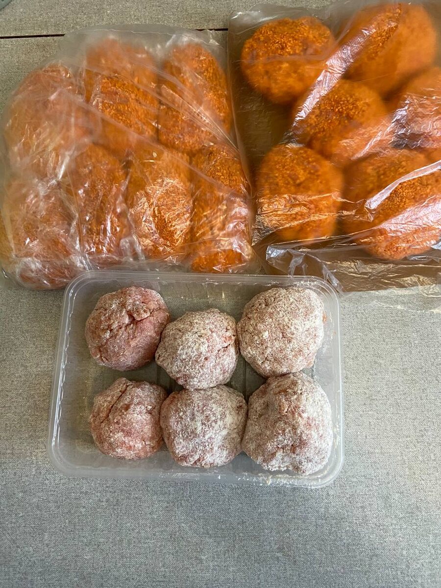 Наготовила полуфабрикатов. Котлеты, ежики, тефтели, пельмени.