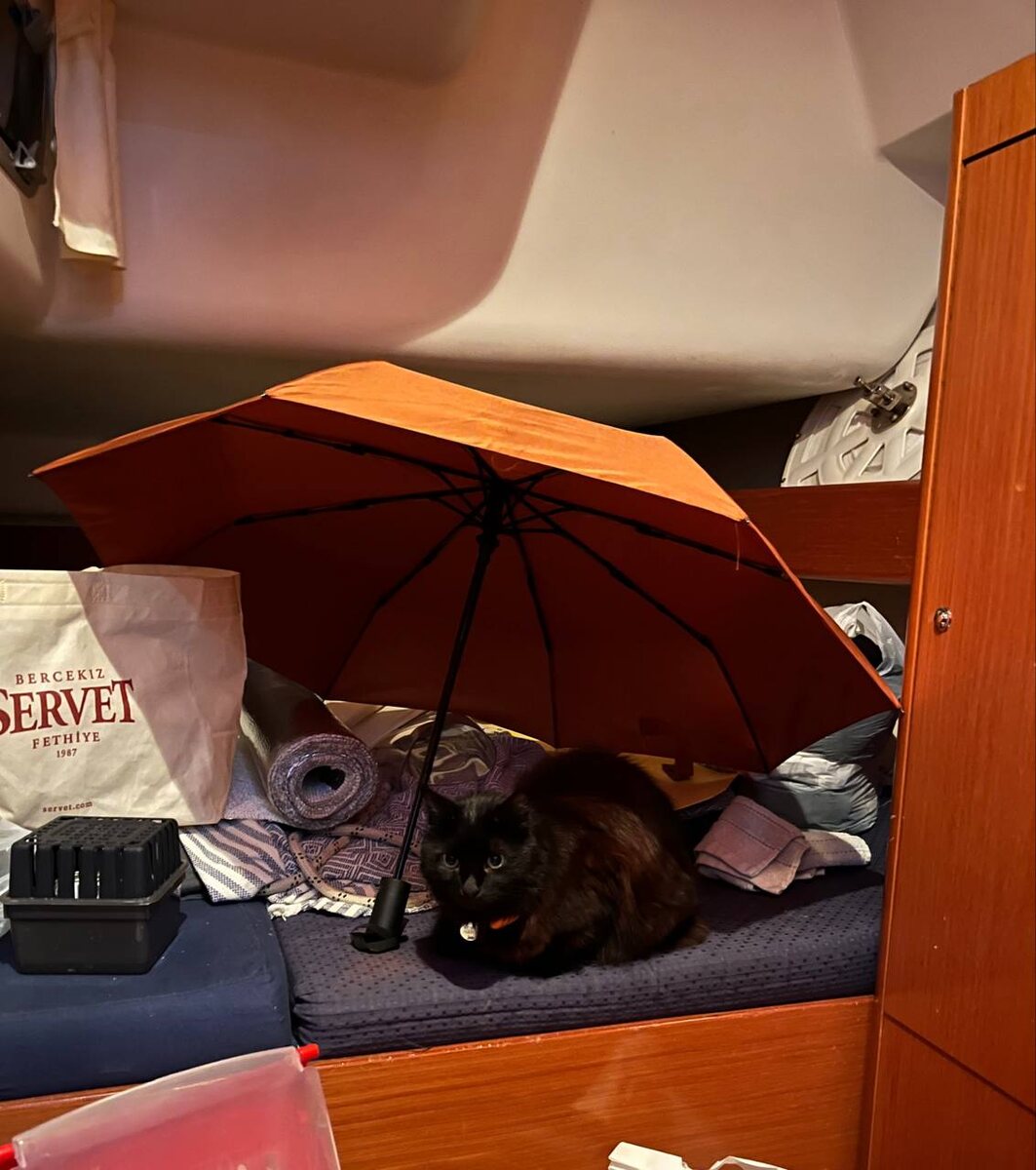 На самом деле, у нас тут град колотит, ветер свистит, у соседей утки повырывало, спасики от прогулочных лодок по марине летают, а швартовы скрипят так, будто вот-вот и у нас что-нибудь оторвётся (тьфу тьфу тьфу) Вчера заводили двигатель, чтобы быть готовыми на случай экстренной ситуации Но! Я вам сейчас расскажу как мы привязаны! Это почти что мангровые леса! На кормовых утках по два швартова - по одному с пружиной, по одному более потравленному запасному. На мидельных утках по одному швартову на правом и левом бортах На носовых утках по мурингу по бортам Итого 8 точек. Анекдотичный случай двух тревожных людей на борту. Но чтобы вы понимали весь цимес анекдота - у нас даже Кот предпочитает тройную защиту от дождя! (Не верьте тем, кто говорит, что коты копируют поведение хозяев. Однозначно, врут!) Вот такая вот история! Штандарт, кстати, снова в Алании! Смотрела издалека как ребята в такую погоду на пертах паруса убирали после ночного перехода. Зависти не испытала 😬