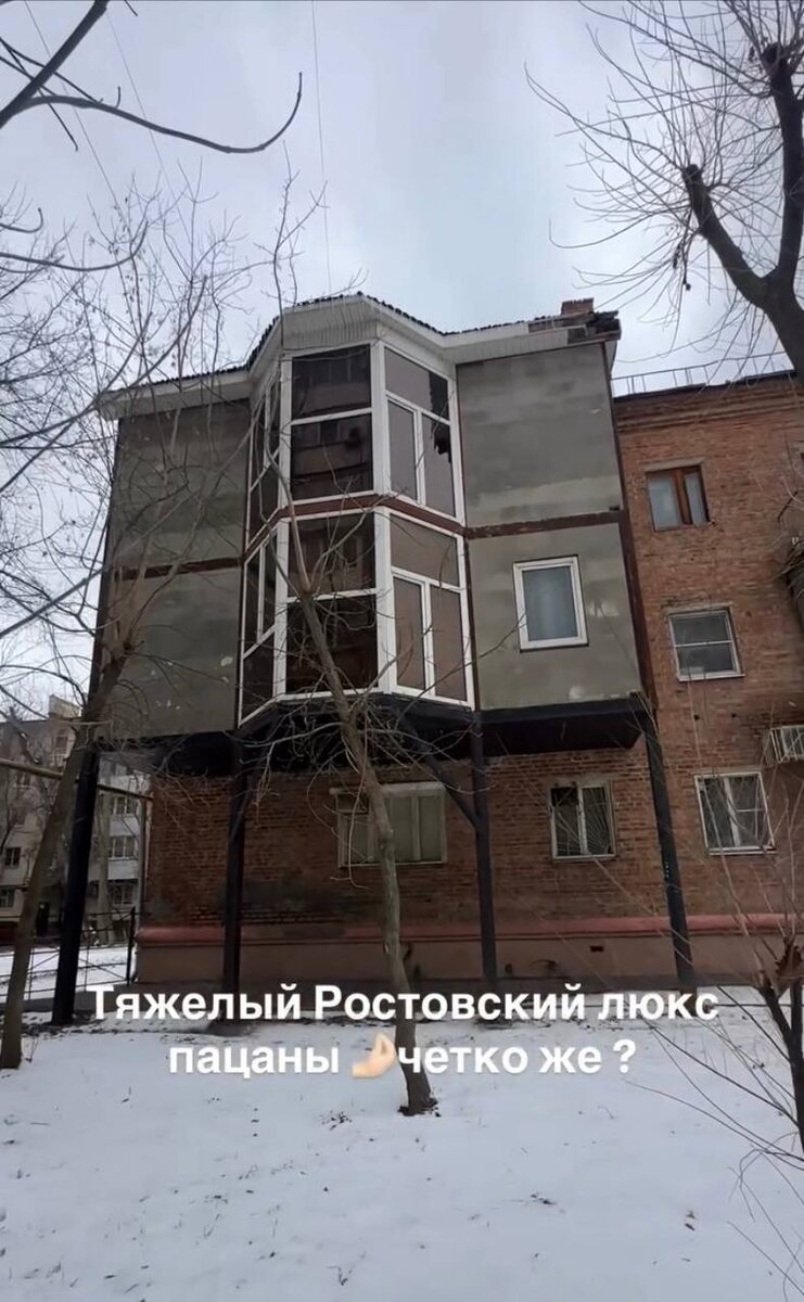 В центре внимания в Ростове-на-Дону оказался необычный архитектурный объект — огромная пристройка-балкон, занявшая два этажа на фасаде обычной трёхэтажки. Местные жители окрестили её «особняком» или «хрустальным замком». 🔍 Что представляет собой конструкция? 💢 Расположена на двух верхних этажах жилого дома. 💢 Имеет сложную форму с остеклением и собственным навесом. 💢 По оценкам жителей, её размер составляет десятки квадратных метров. 😣 Почему соседи недовольны? Главная претензия — пристройка практически полностью перекрывает доступ солнечного света в окна соседних квартир. Люди жалуются, что теперь вынуждены постоянно включать электрический свет даже днём. Кроме того, жильцов беспокоит возможная незаконность сооружения и связанные с этим риски для безопасности всего дома. ⚖️ Законность и реакция властей: Ситуация вызвала резонанс, и её взяли на контроль надзорные органы: 💢 Прокуратура и Госжилинспекция провели проверку. 💢 Установлено, что работы по возведению конструкции не