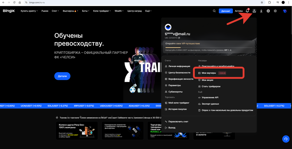 Часть бонусов на бирже выдают в ваучерах (например, за ежедневные чекины), иногда биржа может просто так прислать вам ваучер, поэтому рекомендую периодически проверять. Все ваши ваучеры доступны в разделе «Ваучеры» в личном кабинете.