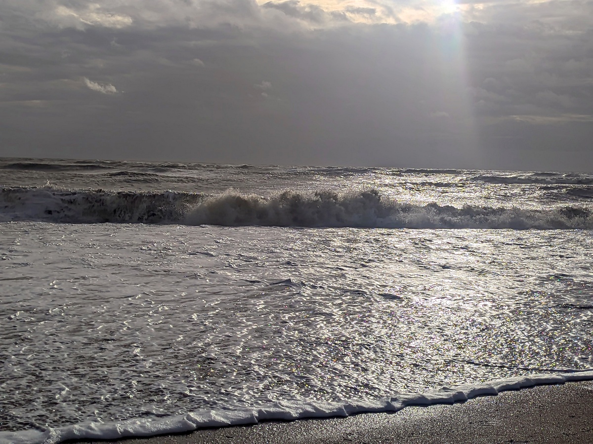 Иногда природа сама выбирает момент, чтобы напомнить о своей силе. Сегодняшняя прогулка по Аршинцевской косе получилась совсем не такой, как обычно. Вместо спокойного моря и привычного пляжного шума — рев ветра, тяжёлые волны и ощущение, что стихия дышит прямо в лицо. Я отправился на косу, чтобы сделать несколько кадров для очередной фотопрогулки, но уже на подходе стало ясно: сегодня море решило показать характер. Юго‑восточный ветер гнал тучи так низко, что казалось, будто они вот‑вот заденут крыши домов. Небо было почти полностью затянуто, но иногда сквозь плотный слой облаков прорывались тонкие лучи солнца — короткие, резкие, словно вспышки. Порывы ветра были такими сильными, что песок поднимался в воздух и хлестал по ногам. Камеру приходилось держать обеими руками — иначе её просто вырывал бы поток воздуха. Но именно в такие моменты фотографии получаются самыми живыми: когда кадр — это не просто картинка, а эмоция. Городской пляж был наполовину затоплен. Волны накатывали одна за д