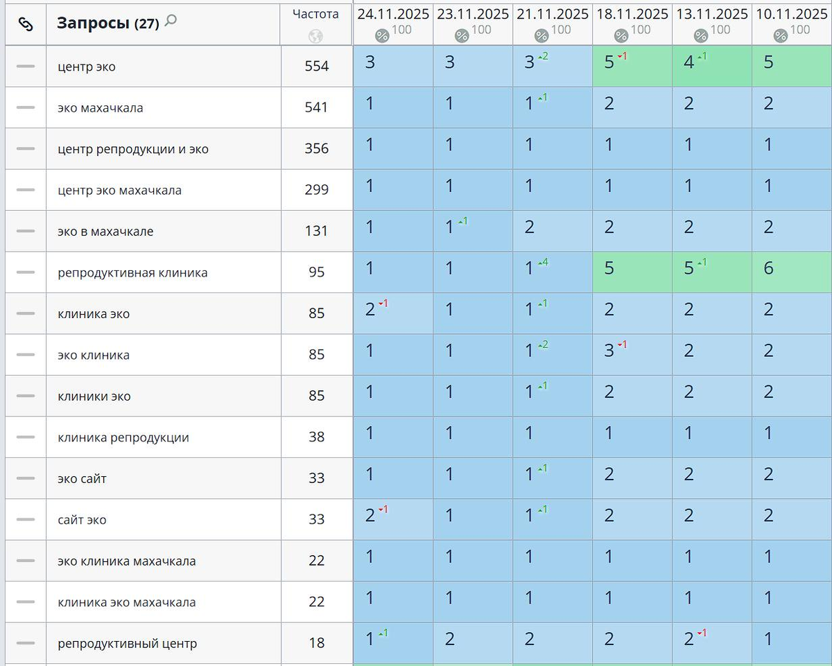 Π½ΠΈΡΠΊΠ°. ΠΠ°Π΄Π°ΡΠ°: ΠΡΡΡΡΠΎ ΠΏΠΎΠ²ΡΡΠΈΡΡ Π²ΠΈΠ΄ΠΈΠΌΠΎΡΡΡ ΠΏΠΎ ΡΠ°ΠΌΡΠΌ ΠΊΠΎΠ½ΠΊΡΡΠ΅Π½ΡΠ½ΡΠΌ Π½Π°ΠΏΡΠ°Π²Π»Π΅Π½ΠΈΡΠΌ β ΡΡΠ»ΡΠ³Π°ΠΌ ΠΠΠ ΠΈ ΡΠ΅ΠΏΡΠΎΠ΄ΡΠΊΡΠΈΠΈ β ΠΈ Π²ΡΠ²Π΅ΡΡΠΈ ΠΏΡΠΈΠΎΡΠΈΡΠ΅ΡΠ½ΡΠ΅ Π·Π°ΠΏΡΠΎΡΡ Π² Π’ΠΠ Π―Π½Π΄Π΅ΠΊΡΠ° Π² ΠΌΠ°ΠΊΡΠΈΠΌΠ°Π»ΡΠ½ΠΎ ΠΊΠΎΡΠΎΡΠΊΠΈΠ΅ ΡΡΠΎΠΊΠΈ. Π Π΅Π·ΡΠ»ΡΡΠ°ΡΡ Π·Π° ΠΏΠ΅ΡΠ²ΡΠ΅ 3 Π½Π΅Π΄Π΅Π»ΠΈ SEO-ΠΏΡΠΎΠ΄Π²ΠΈΠΆΠ΅Π½ΠΈΡ π ΠΠ±ΡΠ°Ρ Π²ΠΈΠ΄ΠΈΠΌΠΎΡΡΡ (Π’ΠΎΠΏΠ²ΠΈΠ·ΠΎΡ): 78% 3οΈβ£ ΠΠ°ΠΏΡΠΎΡΠΎΠ² Π² Π’ΠΠ-3: +116% π ΠΠ°ΠΏΡΠΎΡΠΎΠ² Π² Π’ΠΠ-10: +158% ΠΠ»Ρ Π°Π±ΡΠΎΠ»ΡΡΠ½ΠΎ Π½ΠΎΠ²ΠΎΠ³ΠΎ ΡΠ°ΠΉΡΠ° β ΡΡΠΎ ΡΠ²Π΅ΡΡ