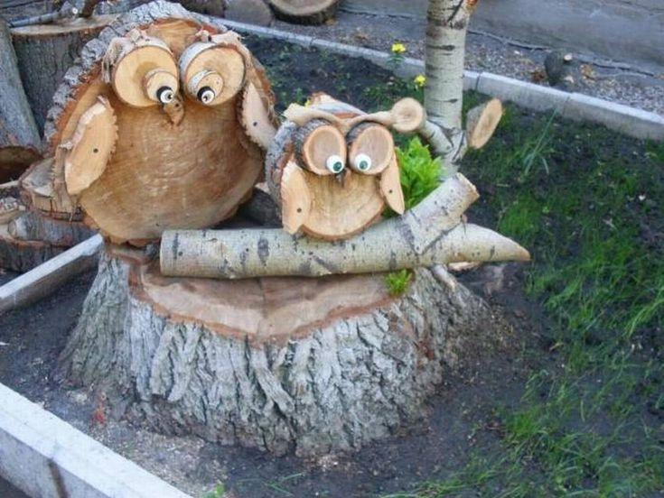 — долговечность при правильной подготовке. Такие поделки выглядят естественно и не выбиваются из органического стиля сада. Перед использованием спилы нужно правильно подготовить: