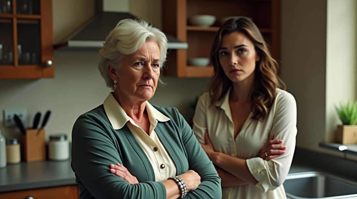 Людмила Петровна, высокая женщина с аккуратно уложенными седыми волосами и строгим выражением лица, даже не подумала снизить голос. Она прошла к столу, поставила на него сумку с продуктами и начала выкладывать пакеты – словно это была её кухня, её дом.
