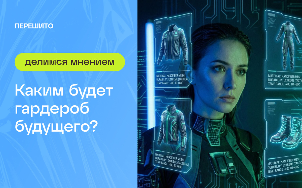 Гардероб будущего вряд ли будет выглядеть как фантастический шоурум из фильмов. Сегодня уже существует так называемая умная одежда: ткани с термохромными и фотохромными пигментами, которые меняют цвет в зависимости от температуры или света, куртки с подогревом, спортивные футболки с датчиками пульса и дыхания, проекты вроде Google Jacquard, где с помощью жестов по рукаву можно управлять смартфоном. Появляются материалы, реагирующие на влагу, давление или движение тела.