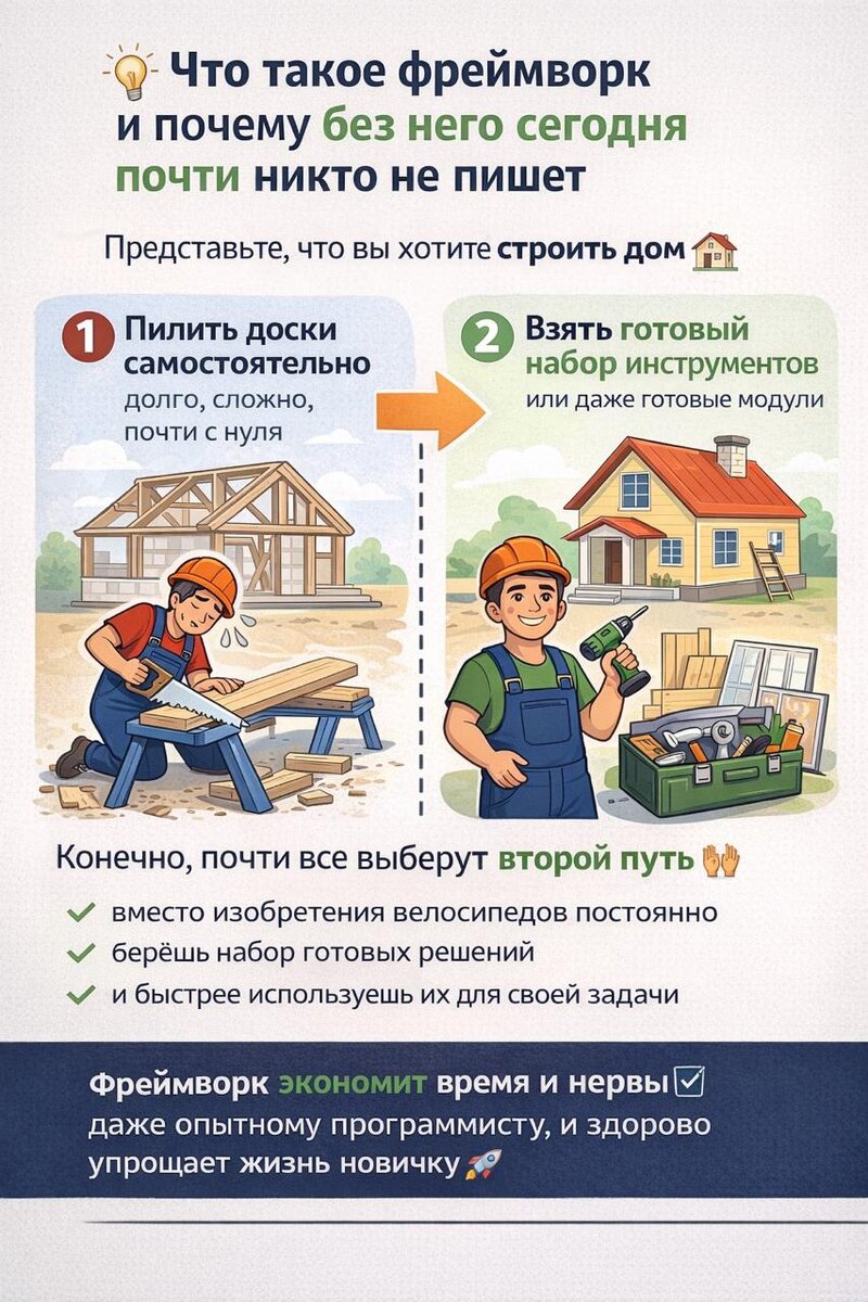 🧱 Что такое фреймворк и почему без него сегодня почти никто не пишет