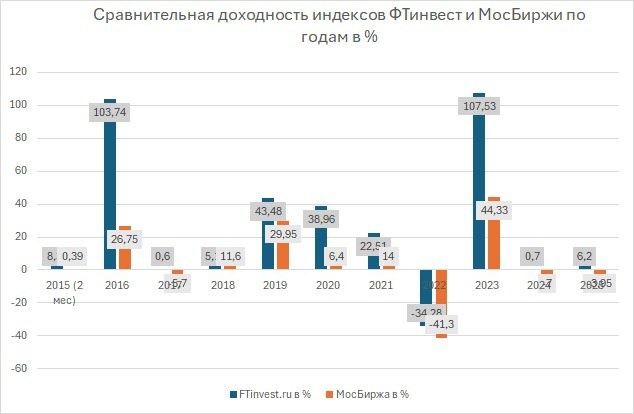Наш российский 🇷🇺портфель – индекс ФТинвест начал свою работу с 1 ноября 2015 года за 10 лет своего существования показав более 665