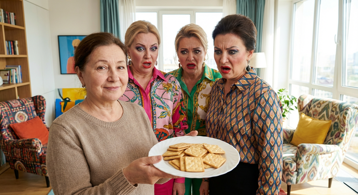 Стол в гостиной был раздвинут, накрыт нарядной скатертью – той самой, льняной, с вышивкой, которую ей подарила бабушка. На столе стоял красивый фарфоровый сервиз: тонкие чашки, блюдца, серебряные ложечки. В центре возвышался заварочный чайник. И всё. Ни тарелок с нарезкой, ни салатниц, ни горячего. Только маленькая вазочка с кусковым сахаром и пачка самых простых галет – сухих, пресных печений, которые обычно грызут при строгой диете.