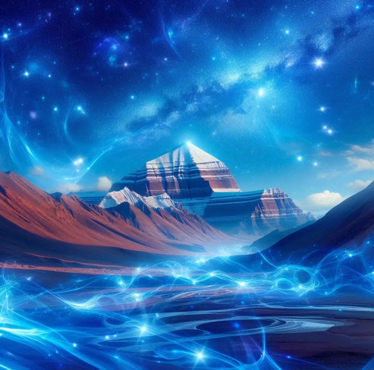 Лариса, я попрошу вас представить, что вы находитесь в Тибете и стоите рядом с горой Кайлас. Это то пространство, где перед Кайласом находятся горы, которые называют зеркалами Кайласа.