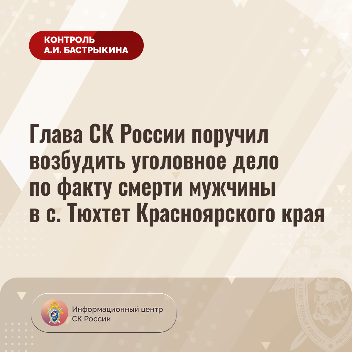 Глава СК России поручил возбудить уголовное дело по факту смерти мужчины в с. Тюхтет Красноярского края