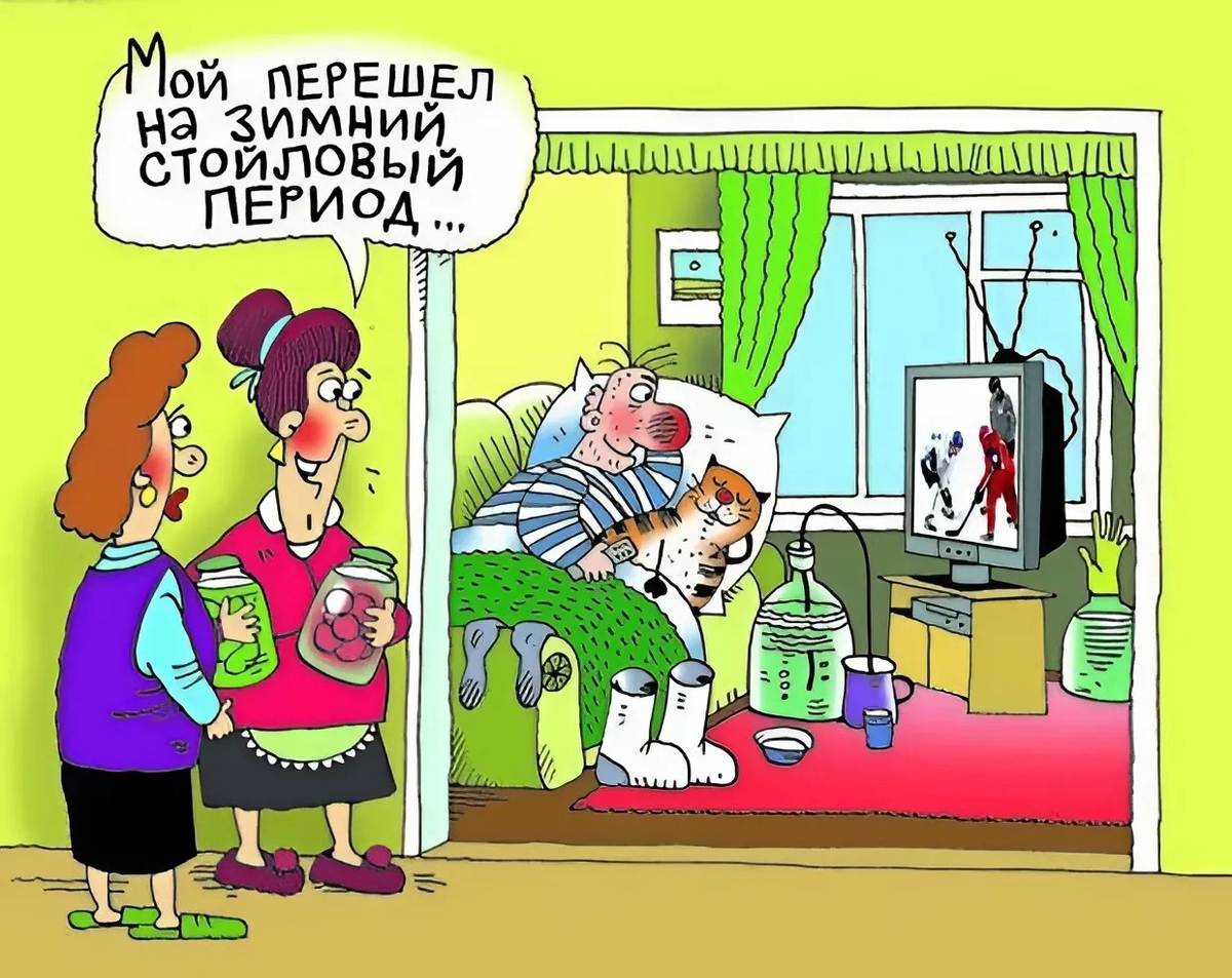 Поэтому подборка легкая. Мне на этот случай вспомнились яркие и веселые карикатуры современного художника Петра Козича. Это и добрые ироничные истории, и своего рода картинки-анекдоты.