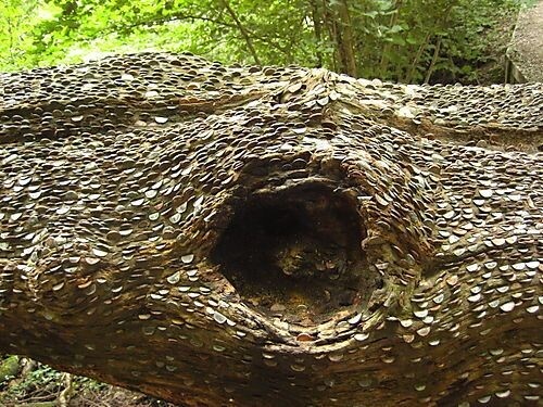 На обычной лесной поляне стоит старое дерево, а его ствол - словно в металлической чешуе. Сотни, а иногда и тысячи монет вбиты в кору так плотно, что кажется, будто дерево надело броню. Для неподготовленного туриста это выглядит как странный арт-объект или чья-то эксцентричная идея. Но на самом деле перед нами - очень древний народный обычай. Традиция "монетных деревьев" не имеет отношения к современным туристам или моде. Её корни уходят в глубину веков - во времена, когда люди искренне верили, что деревья населены духами и божествами. Чтобы задобрить эти силы, им приносили дары. Сначала - пищу или предметы быта, позже - монеты. Их не просто клали рядом, а вбивали в ствол камнем, чтобы подношение нельзя было забрать или украсть. Считалось, что таким образом человек вступает в прямой контакт с потусторонним миром. По народным по