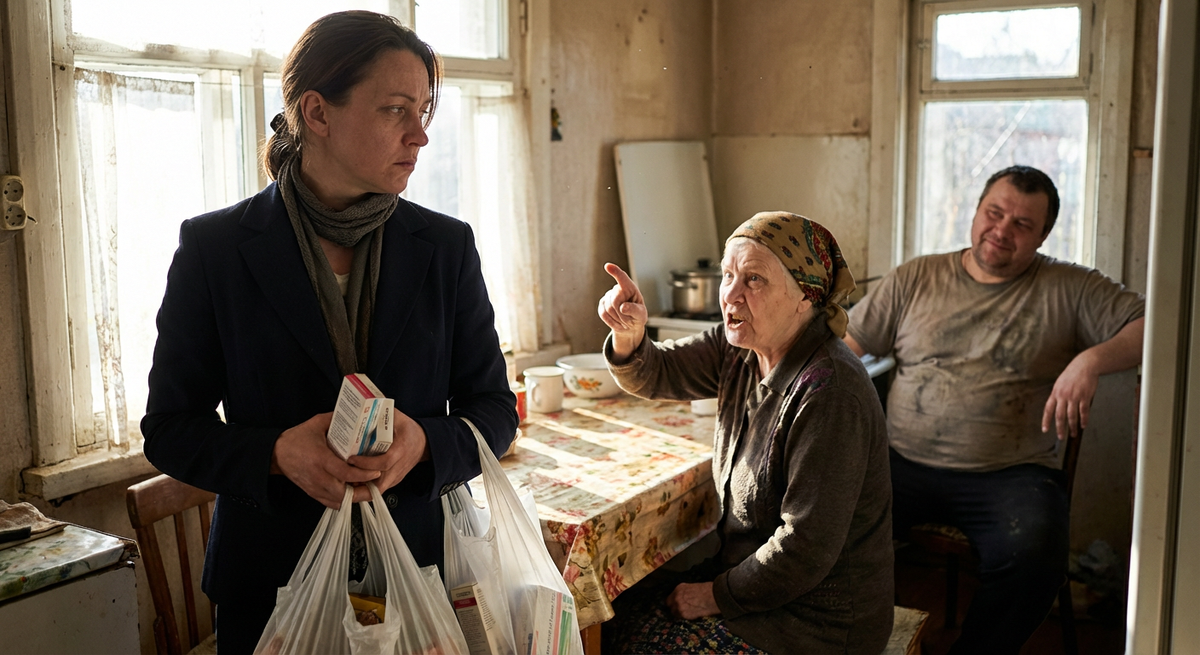 Ольга замерла с тяжелым пакетом в руках прямо на пороге веранды. В пакете звякнули банки с дорогими витаминами и упаковки с лекарствами, которые она полчаса назад выкупала по всему городу. Запах старого дерева, пыли и лекарств – привычный запах родительского дома – ударил в нос, но сегодня он казался особенно затхлым и удушливым.