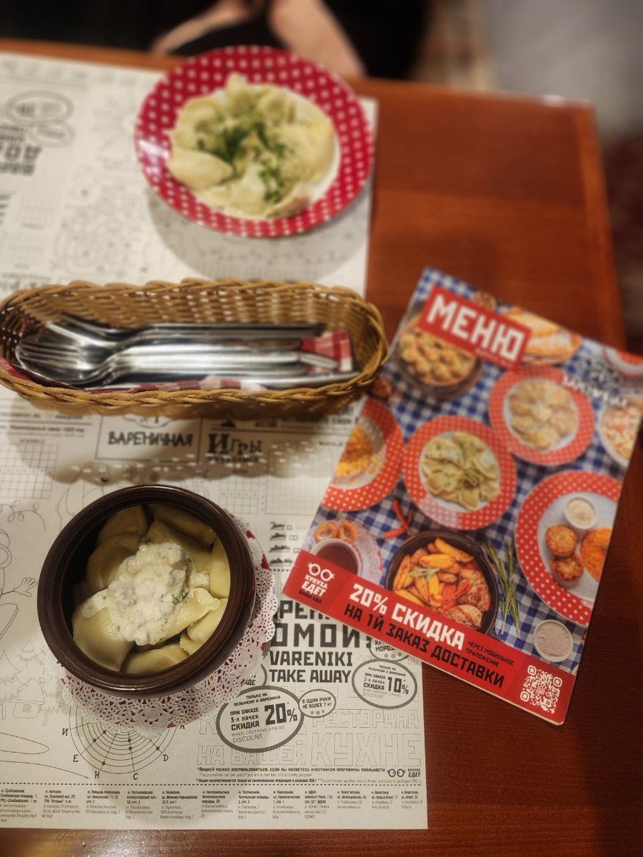 Начиная от супер советского дизайна, заканчивая трубочками с кремом вкусом из детства Тысячу раз ходила мимо и никогда не возникало мысли зайти (вареники что ли не ела?) К слову вареники тоже супер вкусные , попробовали с картофелем и грибами с мясной зажаркой и с сыром и шпинатом. Рекомендуем однозначно 👍