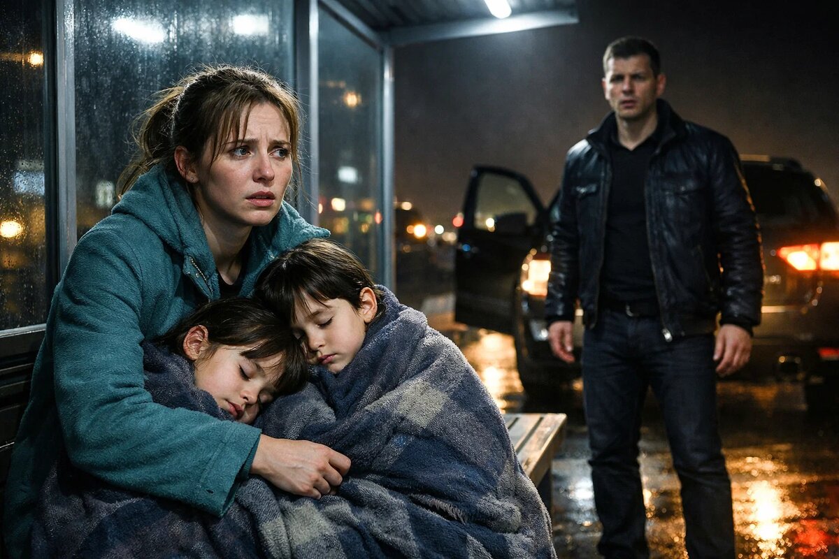 Анна сжала холодные пальцы дочери и не ответила. Дома не было. Хозяин выставил их три часа назад — за долги, поздно вечером, без разговоров. Ледяной дождь хлестал по остановке, дети дремали под старым пальто, а телефон показывал три процента заряда.