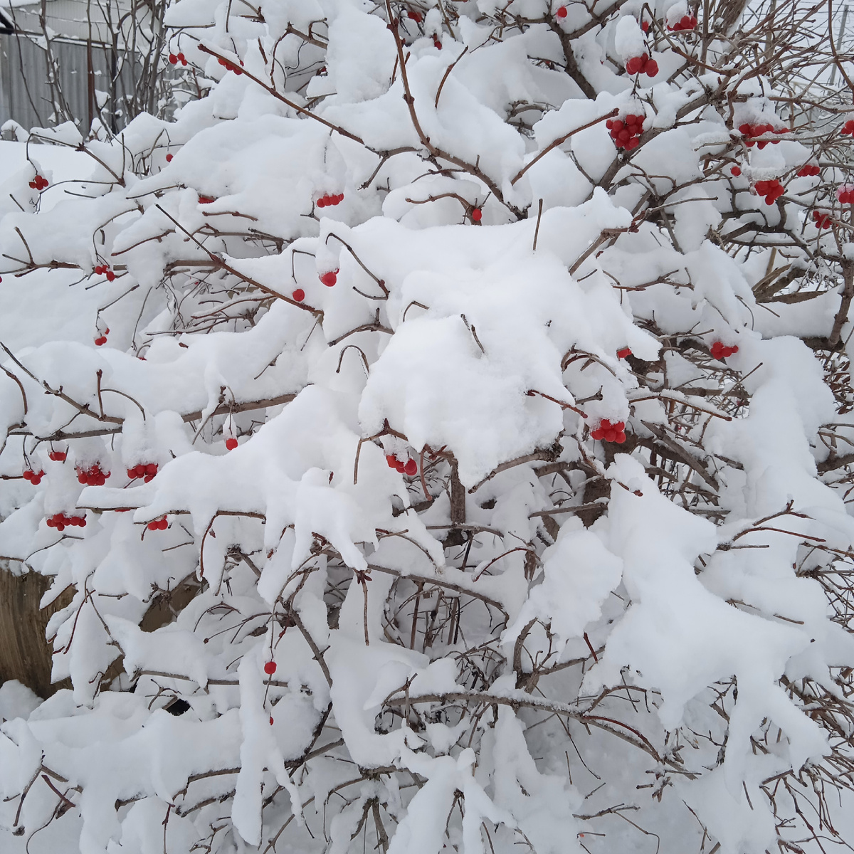 А зима и в самом деле в этом году красавица! До чего уж я ее не люблю, но сегодня, просто, залюбовалась. Даже немного погуляла и пофоткала. Калину еще не всю снегири склевали, а их в этом году очень много. Ну, разве не красота! Словно открытка новогодняя! Не скажу, что очень много снега, но и такого года три не было. Вот и столик мой надежно укрыт. Там внизу остались зимовать очитки . Думаю , ничего с ними не станется, под такой шубкой. А вот под абрикосом, видите холмики? Там прячутся розочки осенней посадки. Но и на газоне полностью укрыты снегом. А вот елочка у забора меня беспокоит. Хотела же связать ее осенью, так дед не захотел помогать, сказал, что снега не будет. Синоптик, блин! Ее уже разламывало, пришлось стягивать внутри. Если туи гибкие и гнутся под тяжестью снега, то ель сразу ломается. Ну, так тебе и надо, нерадивый садовод! Остальное все не вызывает тревоги и опасения за положительную зимовку. Почему для меня это важно. Да потому, что посевы свои я вынесу в сад и под с