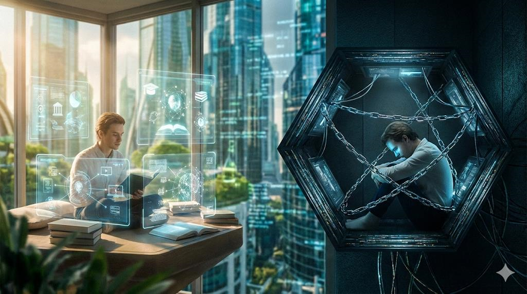 Смартфон в кармане — это одновременно доступ к совокупному интеллекту человечества и инструмент самозаковывания в невидимые оковы. Никогда прежде знания не были столь близки, и никогда прежде внимание не было столь уязвимо. Между стремлением к развитию и жаждой мгновенного одобрения разворачивается тихий внутренний конфликт. Он касается не технологий, а человеческой природы, которая ищет смысл, но легко поддается примитивным сигналам принадлежности и признания. Социальные сети давно перестали быть услугой — человек стал их основным продуктом. Экономика цифровых платформ выстроена вокруг точного измерения слабостей, привычек и реакций, превращая поведение в предсказуемую модель. Алгоритмы не просто подбирают контент — они формируют предпочтения, запирая сознание в фильтрующих пузырях. В этом пространстве альтернативные идеи кажутся угрозой, а глубина мышления уступает место короткому эмоциональному импульсу. Так внимание, единственный невосполнимый ресурс, растворяется в бесконечной ле