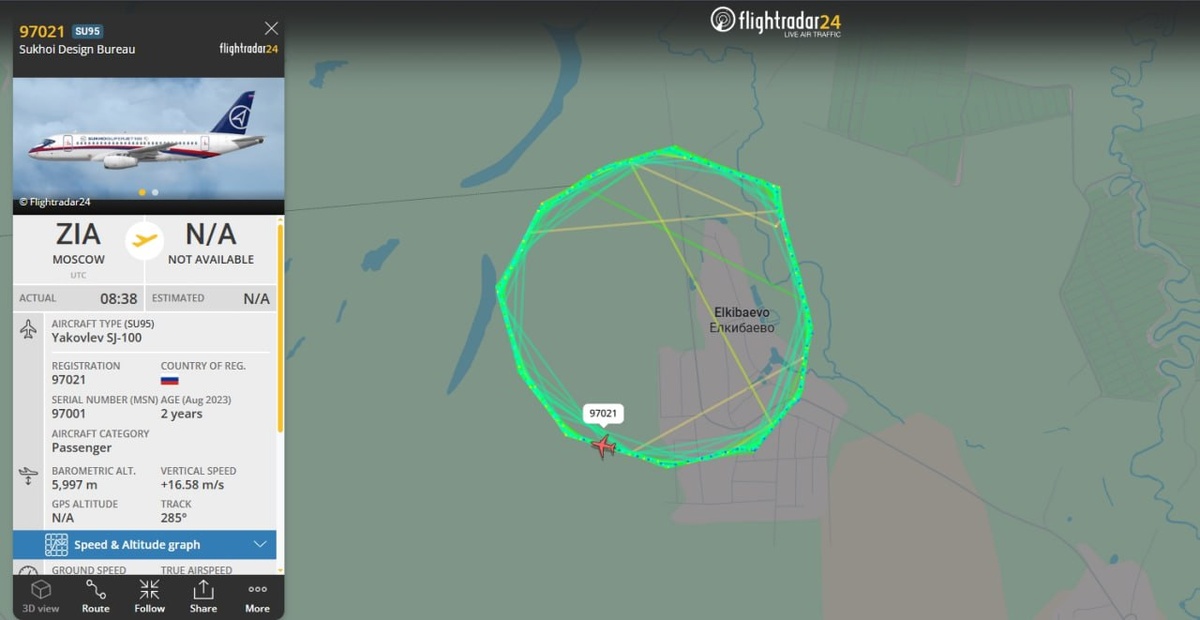 Выполнен полёт по гражданским воздушным трассам до Уфы и обратно в Жуковский. Над посёлком Елкибаево самолёт выполнял режимы примерно с 10:15 до 11:30 UTC. Общая дистанция полёта составила около 2500 км, в воздухе самолёт провёл примерно 3,5 часа. https://dzen.ru/id/6425916a1950720421f18802