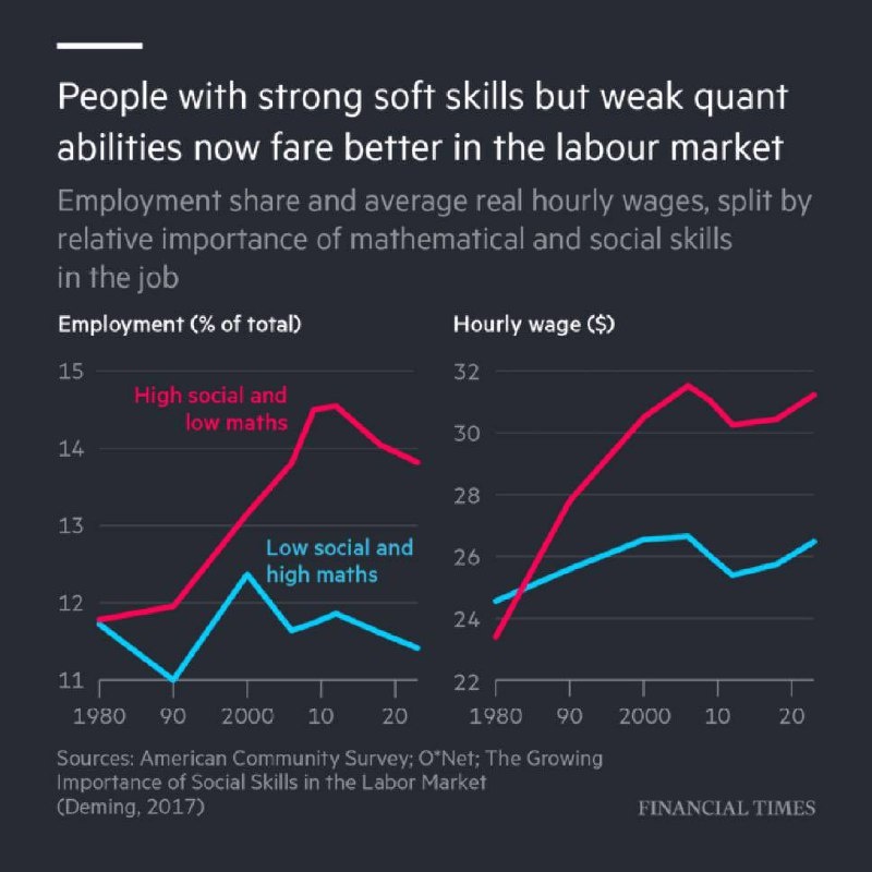 💡 Эксперт Financial Times проанализировал данные Минтруда США по 900 профессиям показал: уже много лет умение работать в команде, договариваться и коммуницировать ценится и оплачивается выше, чем любые другие навыки. Что важно: ✅ Работодатели охотнее платят за навыки общения, чем за знание высшей математики. Даже при найме программистов. ✅ С появлением ИИ, который берёт на себя рутинные задачи, этот тренд усилился. Теперь важен ваш реальный вклад и ценность для команды. ✅ Идеи, творчество и умение находить общий язык стали мастхевом. Технические навыки превращаются в базовый минимум. В 2026 году срочно прекращаем сидеть в одиночестве и прокачиваем коммуникацию! 😬 Вывод: Гибкие навыки — это новая валюта на рынке труда, особенно в эпоху ИИ. 🤖 Ботоферма в деле!