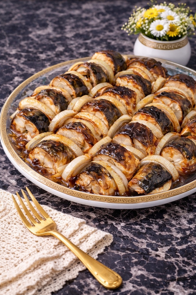 Если вы думаете, что скумбрия — это скучно, вы просто не пробовали её в этом союзе! Лук, томлёный в соку рыбы и томатно-майонезной шубке, становится сладким деликатесом. А рыбка... такая нежная, что отваливается сама. Секрет — в количестве лука и том самом «Лечо». Готовьте и хороните стереотипы о пресной рыбе!