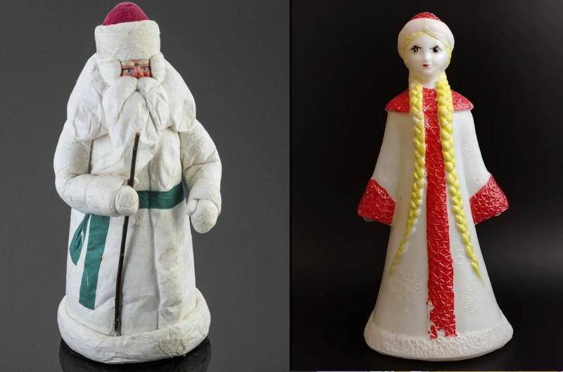 В Советском Союзе эта традиция зародилась в середине 1930-х годов, а до этого новогодние торжества были под запретом как часть религиозной традиции. В 1937 году в Колонном зале Дома Союзов прошла первая советская ёлка, главным персонажем которой стал Дедушка Мороз — добрый старик с мешком подарков для детворы, и только через год к нему присоединилась Снегурочка. Изначально фигурки делали вручную в артелях игрушечников: каркас изготавливали из древесины, лицо лепили из папье-маше или глины, наряд делали из ваты, покрывая её клейстером, после чего раскрашивали и посыпали битым стеклом для блеска. Каждая фигурка создавалась индивидуально. После Великой Отечественной войны новогодние символы стали делать из прессованных опилок и папье-маше, а к началу 1970-х годов сформиро