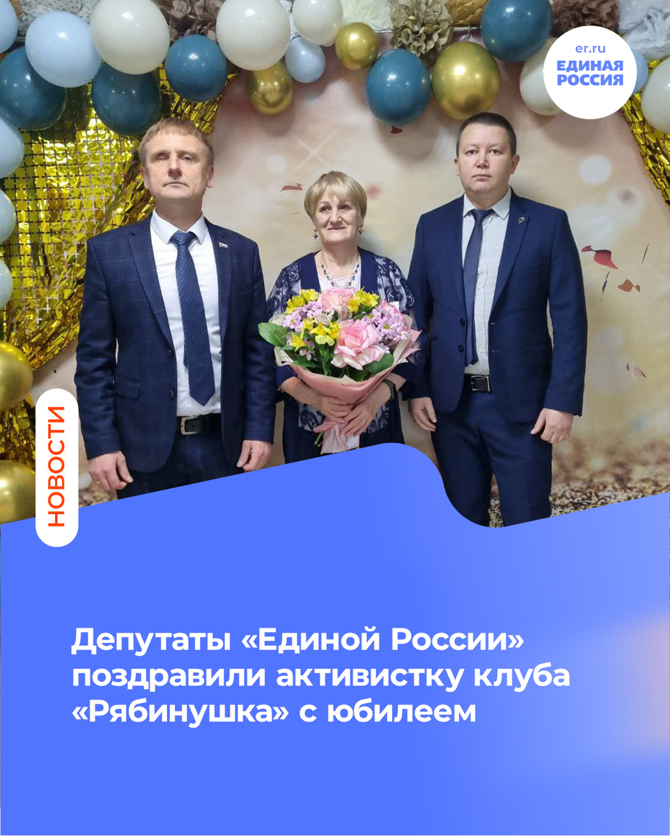 Виктор Гмырин и Сергей Езынгов поздравили Татьяну Александровну Игнатьеву — активную участницу клуба «Рябинушка» — с 70-летием