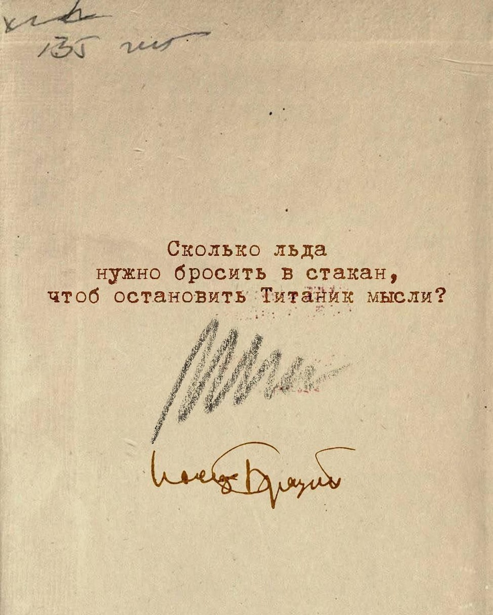 Было ли сказано слово? И если да, - на каком языке? Был ли мальчик? И сколько льда нужно бросить в стакан, чтоб остановить Титаник мысли?
