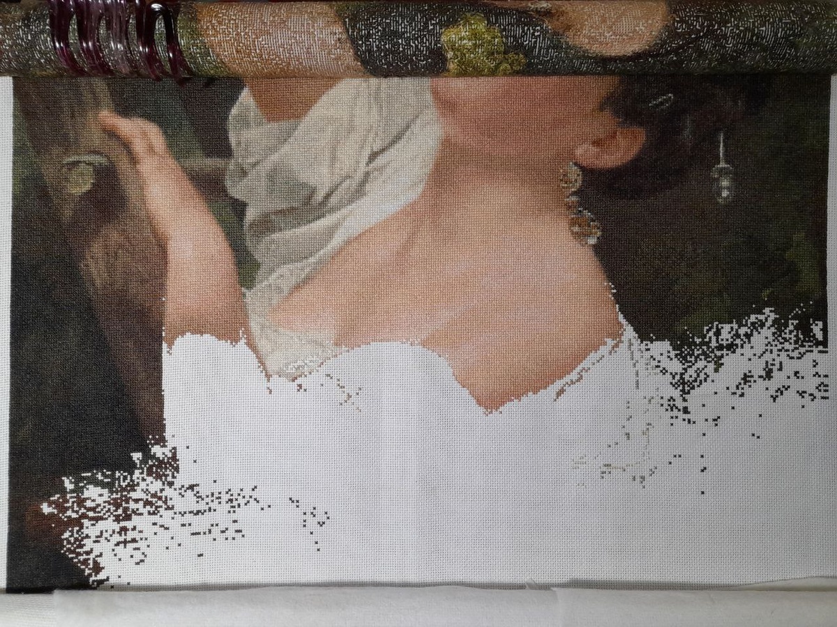 Год закончился и 25% на процессе все таки добавилось, даже 26%... Сейчас работа готова на 76%. 24% осталось на следующий год и будет хорошо, если вышивать по 2% в месяц. Это вполне не сложно, если брать процесс хоть иногда в руки...))) В общем точно ждем финиш в этом году. И чем раньше, тем лучше. Впереди последняя перемотка процесса на раме и открыта будет вся не вышитая часть работы.