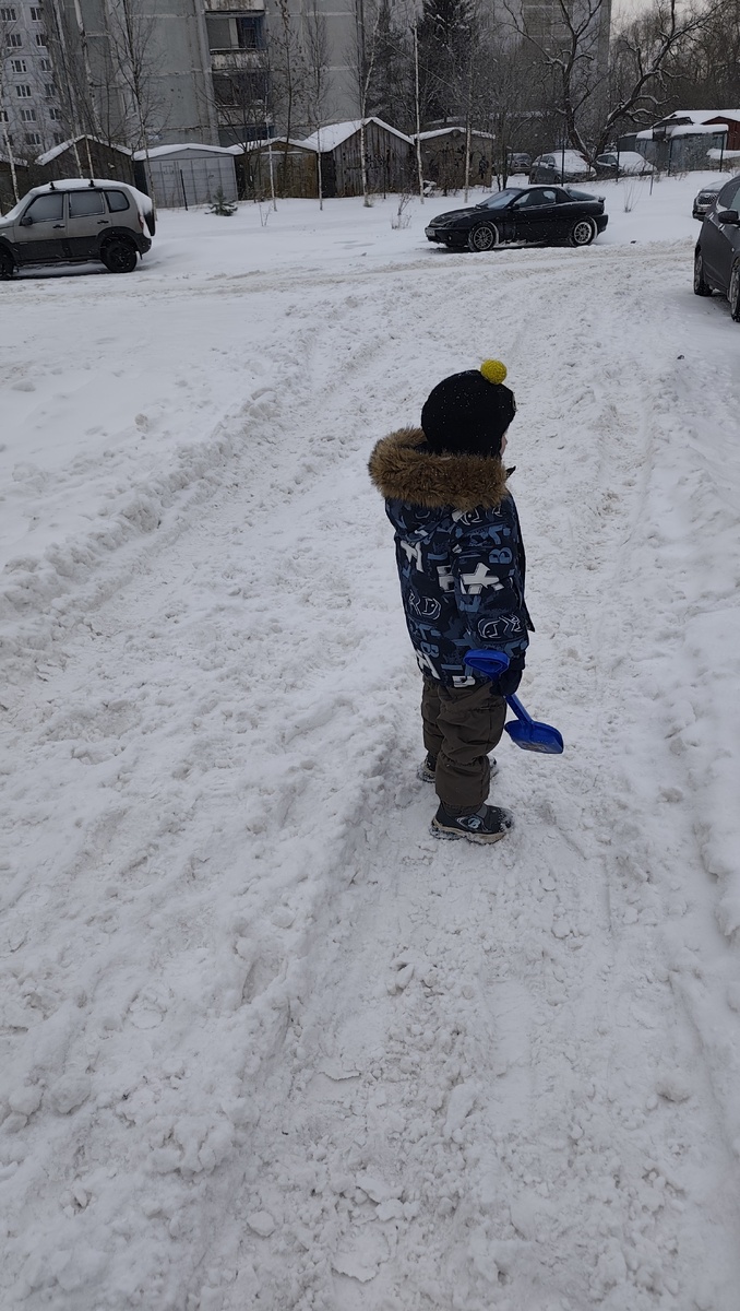 Ребенок решил, что этой лопаткой он сможет прокопать тропинку