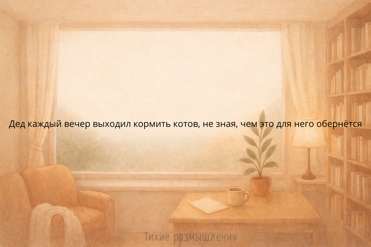 Семён Петрович всегда был человеком привычки. Вставал в семь утра, читал газету за завтраком, в обед непременно дремал в кресле. А вечером, ровно в восемь, выходил во двор с пакетом сухого корма. Соседи уже привыкли видеть его сутулую фигуру у подъезда, где собиралась пёстрая кошачья компания.