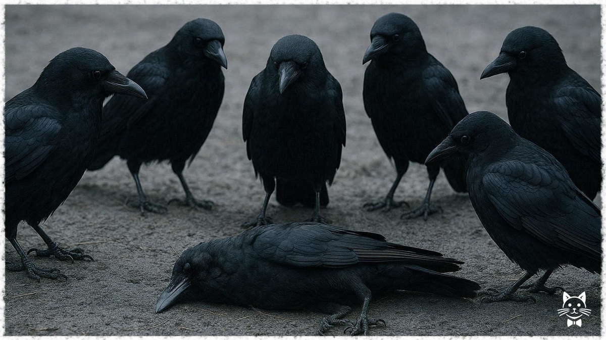 Вы видели, как мы собираемся вокруг покойного сородича. Молчим. Смотрим. Иногда кричим. Вы думаете, мы скорбим? Нет. Мы учимся. Мы запоминаем. Чтобы не оказаться на его месте. Вы, люди, называете это «похоронами». Для нас это урок выживания, который читает сама костлявая. Наш ритуал кажется вам торжественным и печальным, но в его основе лежит холодный расчёт и коллективный интеллект, отточенный миллионами лет эволюции. Когда одна из нас находит тело, звучит не плач, а сигнал тревоги. Громкий, пронзительный крик, разносящийся на сотни метров. Это наш способ объявить тревогу и созвать стаю. За пятнадцать-двадцать минут собирается группа от двадцати до полусотни птиц. Начинается тщательное расследование. Наш мозг, один из самых развитых в мире пернатых, сравнивают с мозгом семилетнего ребёнка по способности к решению задач. Мы изучаем позу тела, ищем следы хищника, анализируем место. Это не эмоции, а сбор данных. Если смерть случилась на дороге, мы запомним этот опасный участок и будем пе
