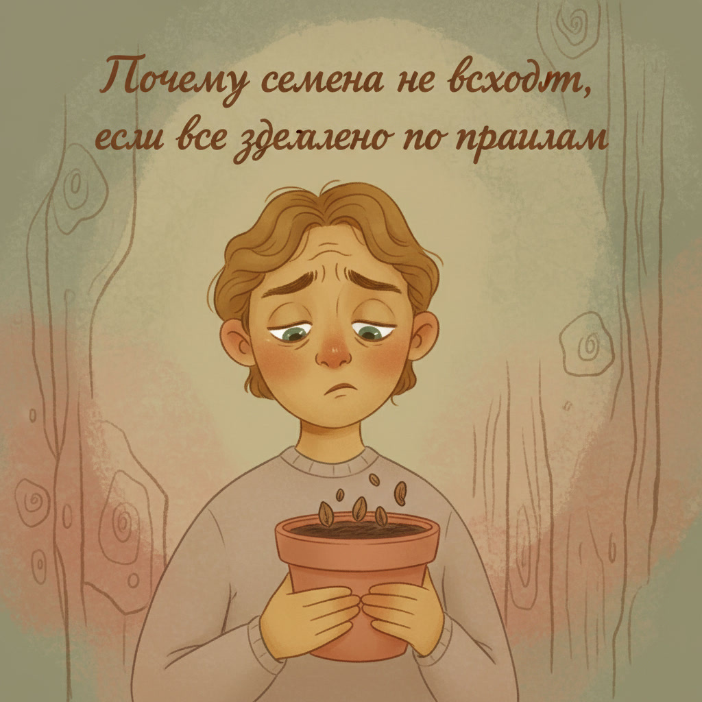 - Грунт должен быть как "отжатая губка" — влажный, но не мокрый. Если вы просто опрыскали поверхность, нижние слои могли остаться сухими, и семя не "проснулось".