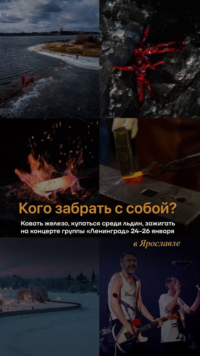 Жду тебя в Ярославле на задорный выезд, поводом для которого стал грядущий концерт группы «Ленинград». 🗓️24-26 января (можно уехать в вс ночью, если в пн на работу) Чем будем заниматься: ✨пойдем к кузнецам на мастер-класс и экскурсию; ✨испробуем айс-флоатинг (купание в костюме телепузика в реке среди льдин); ✨изучим историческую часть города из окна своего дивного отеля и на прогулке, конечно же; ✨отведаем чаю и конфет, ибо в таком городе грешно этого не сделать; ✨съездим в самое красивое село России. Село купцов и огурцов;😁 ✨ну, и, конечно, подпоем Сергею Шнурову в вс вечером (25 января). По расходам есть два варианта: 1️⃣ на активности и проживание в отеле 1 ночь с сб на вс — 14т + билет на концерт (смотрю места за 6-7т) 2️⃣ на активности и проживание в отеле 2 ночи с сб на пн — 19500 + билет на концерт (6-7т) Если ты не хочешь плескаться в костюме телепузика, эту статью расходов можно убрать. Остались вопросы? Не держи в себе — напиши мне.😁🌷