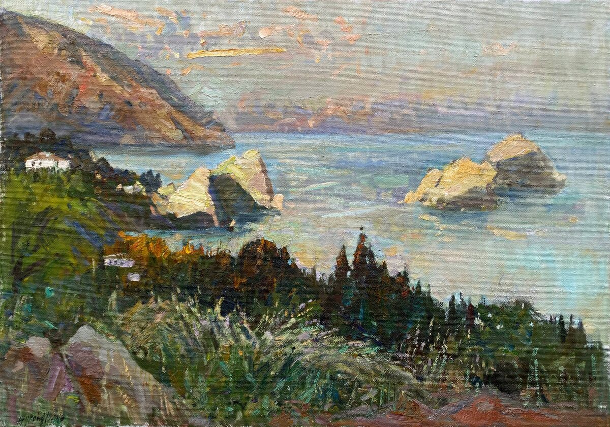 Говорят, что художник не заканчивает работу, а только прекращает над ней трудиться. Но иногда я всё-таки возвращаюсь. В этот натурный холст из Гурзуфа очень хотелось внести некоторые правки, что-то дописать, обобщить. Планировала показать работу на своей недавней персональной выставке, но она так и не вошла в экспозицию. Однако, я всё равно рада, что еще немного пописала ее, возможно, и не в последний раз 😆. По вопросам приобретения: painter100@mail.ru Ссылка на сайт: https://juliya-zhukova.pixels.com/featured/quiet-evening-at-sea-juliya-zhukova.html Телеграм #seascape #живопись #перфекционизм #крым #гурзуф #crimea #oilpainting