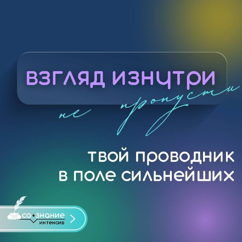 ❓ Я уже писала, что готовлюсь к эфиру во вторник, где являюсь приглашенным экспертом марафона. Что, если всё это время ключ к вашему благополучию спрятан ВНУТРИ ВАС? Бесплатный интенсив «Взгляд изнутри» найдет ответы на ваши самые волнующие вопросы. А так же каждый участник получит уникальные подарки от спикеров💝. Старт в понедельник ❤️ ЗАЙТИ НА ИНТЕНСИВ P.S. Количество мест ограничено