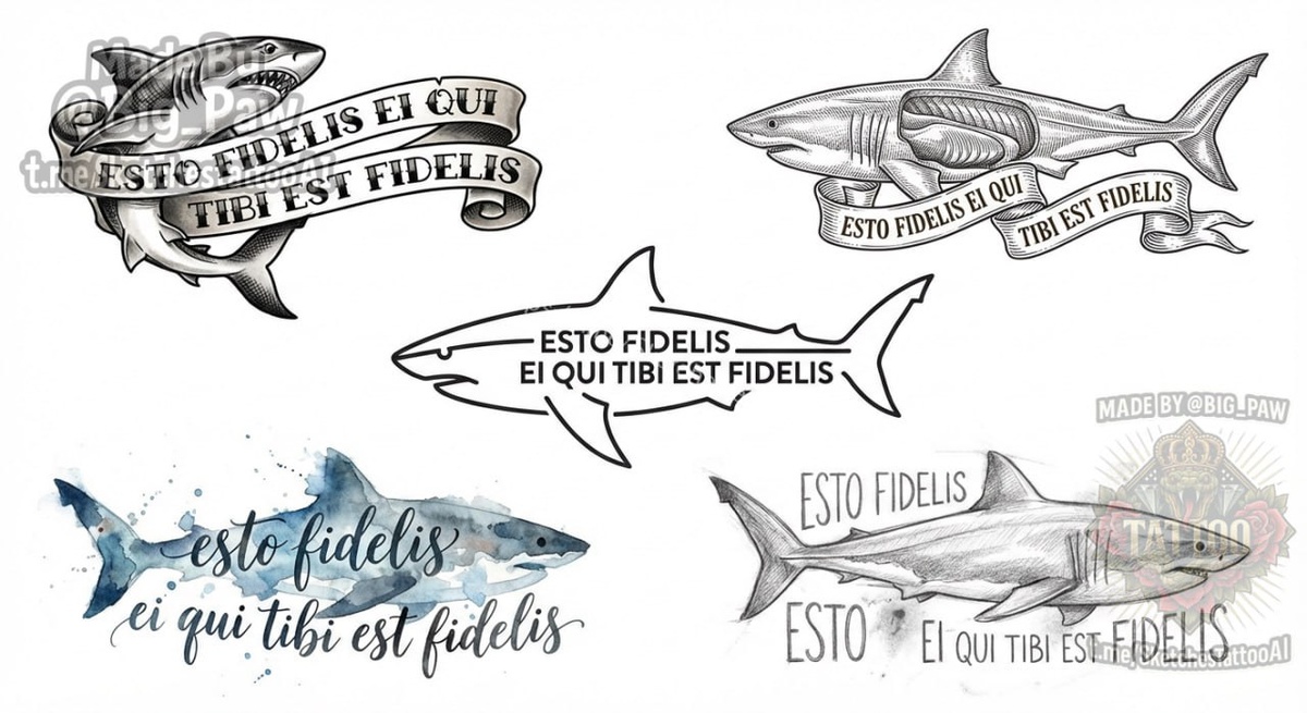 Надпись следующая( будь верен тому - кто верен тебе) на латыни. И совместить с акулой. Заранее спасибо 🧠 SYNTX - тут создан эскиз 💎 Информация - все услуги 💀 Эскизы от нейросети 😎 Удалить тату #акула #текст #надпись #эскиз #тату #татуировка
