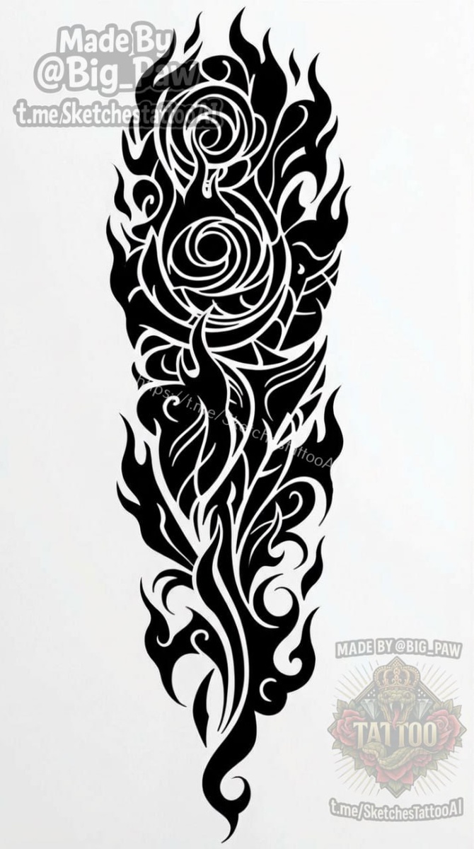 пламени, языки пламени должны идти снизу и до верха, желательно без теней 🧠 SYNTX - тут создан эскиз 💎 Информация - все услуги 💀 Эскизы от нейросети 😎 Удалить тату #трайбл #цветной #розы #эскиз #тату #татуировка