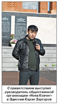 В своем выступлении главный редактор газеты «Ноев Ковчег» Григорий Анисонян, специально прибывший из Москвы, подчеркнул важность открытия подобного монумента, который будет не только знаком объединения армян Ставропольского края, но и символом дружбы и братства между двумя христианскими народами – русским и армянским. Он также высоко оценил деятельность одноименной с газетой местной общественной организации «Ноев Ковчег» и наградил орденскими знаками «Честь и достоинство» Карэна Заргарова и общественного деятеля Валерия Меликшаева.